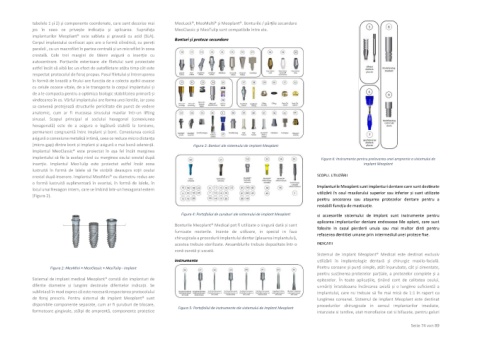 formatoare gingivale, stâlpi de amprentă, componente protetice Figura 5: Portofoliul de instrumente ale sistemului de implant Meoplant intarziate si tardive, atat monofazice cat si bifazate, pentru goluri